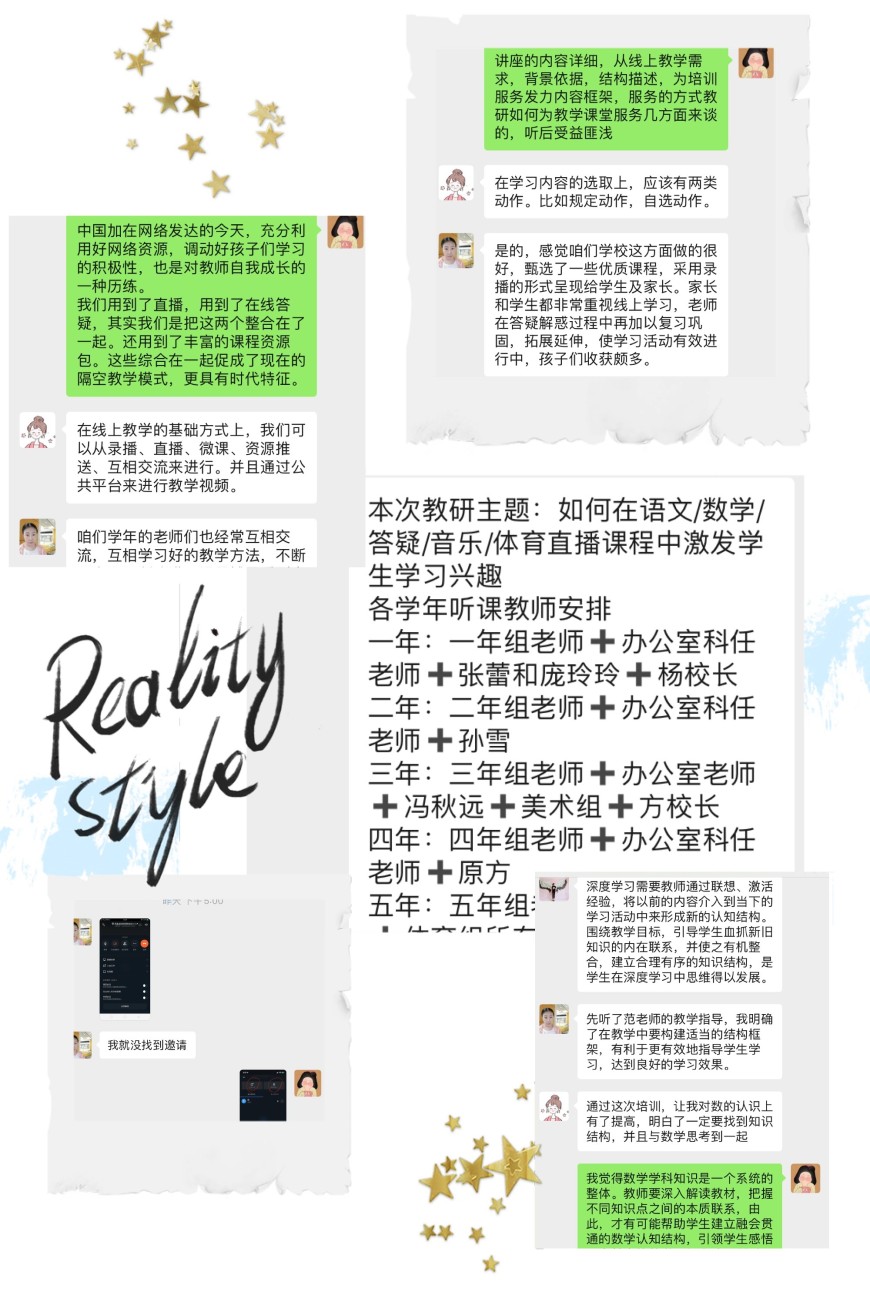 基于发现的问题,学校确立了本次的教研主题为“如何在各学科直播课程中激发学生学习兴趣”, 围绕本次研修活动的主题一年组教师多次进行了相关的培训、学习及研讨,老师们颇有收获。