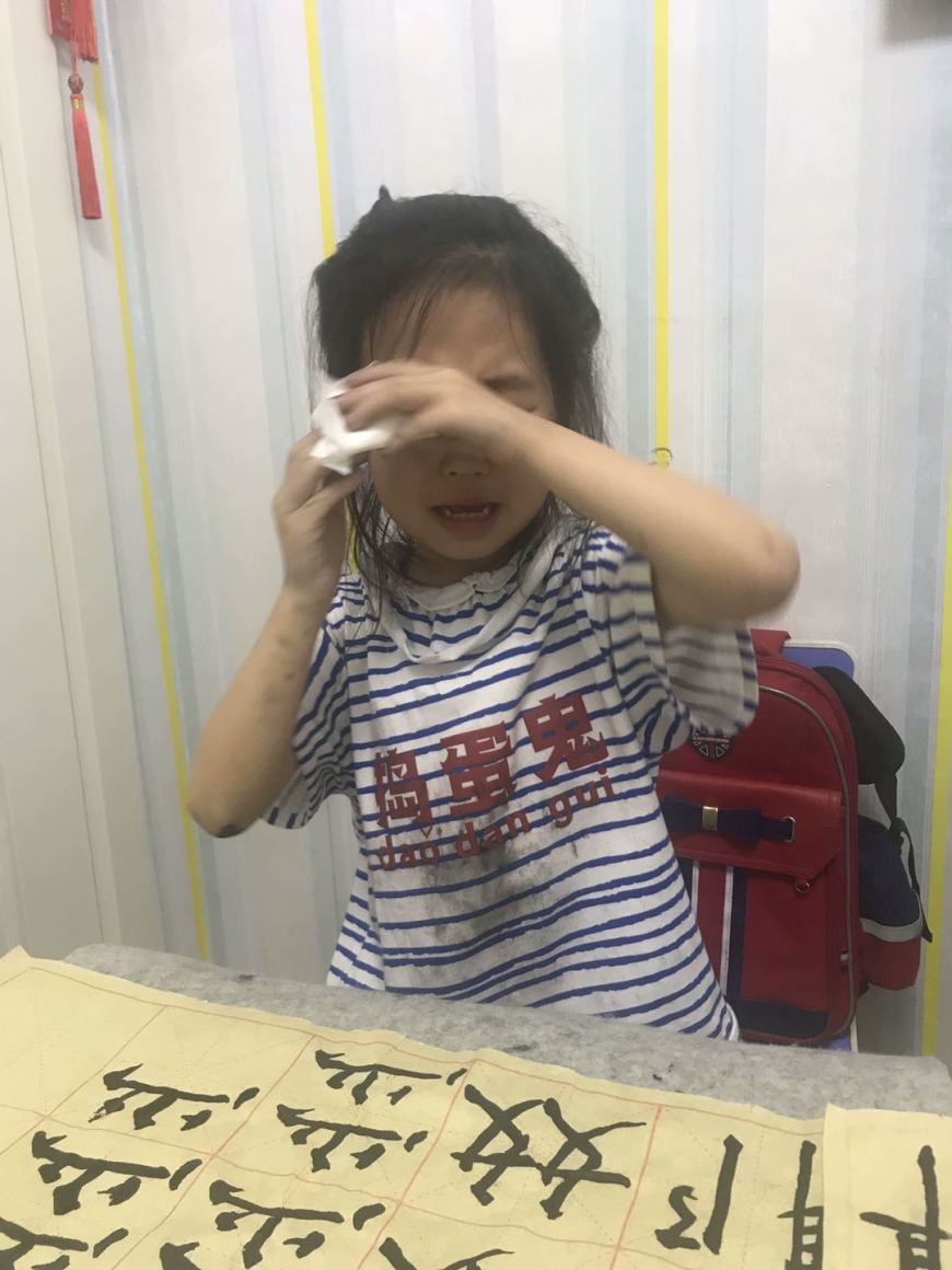在学习书法的最初阶段心里面也有过动摇,觉得学习书法过于严格和枯燥。委屈过、苦恼过、哭过;也曾经有过在闷热的夏天里,脸上混合着汗水,泪水和墨水的味道。当看到自己取得的成绩时,心里的喜悦又是按捺不住的。