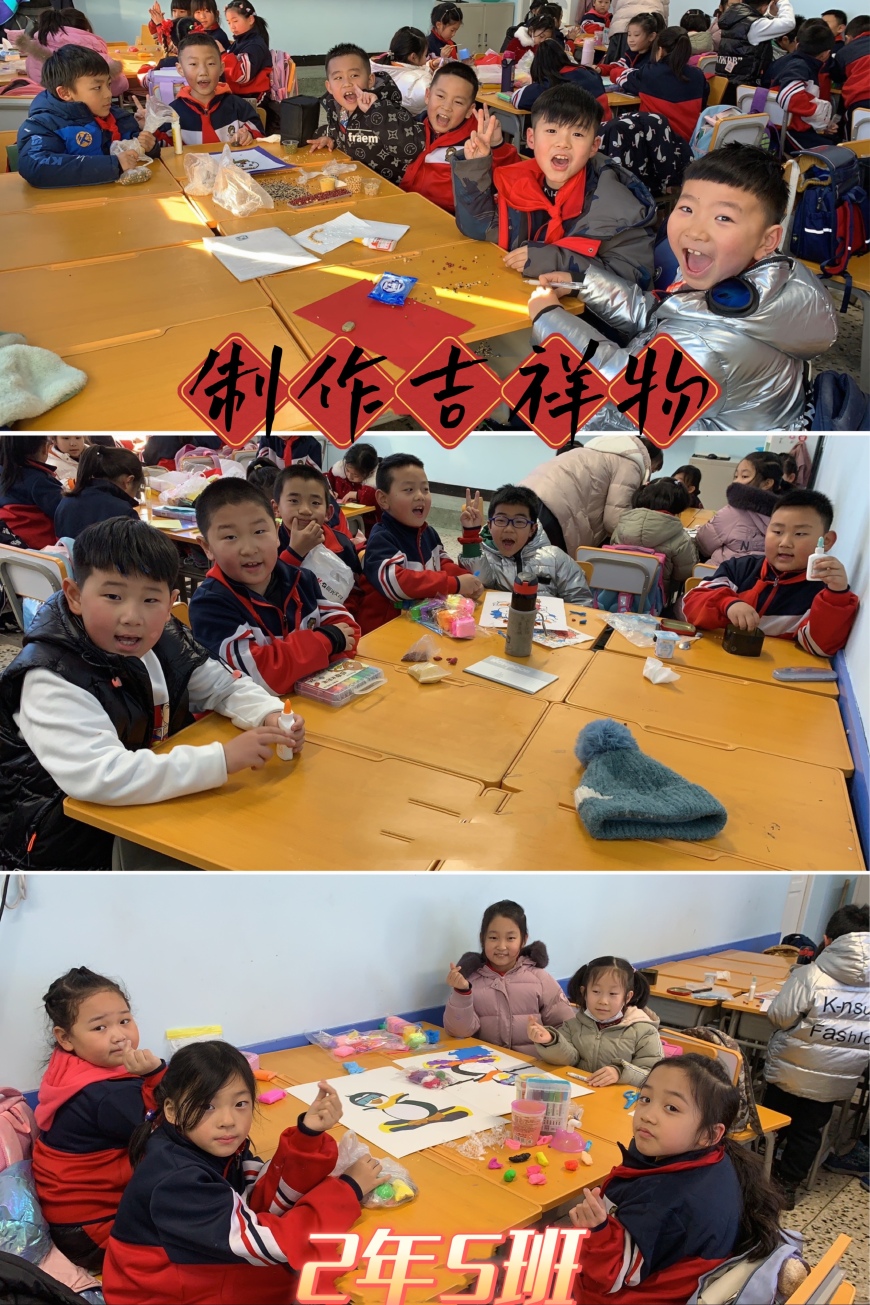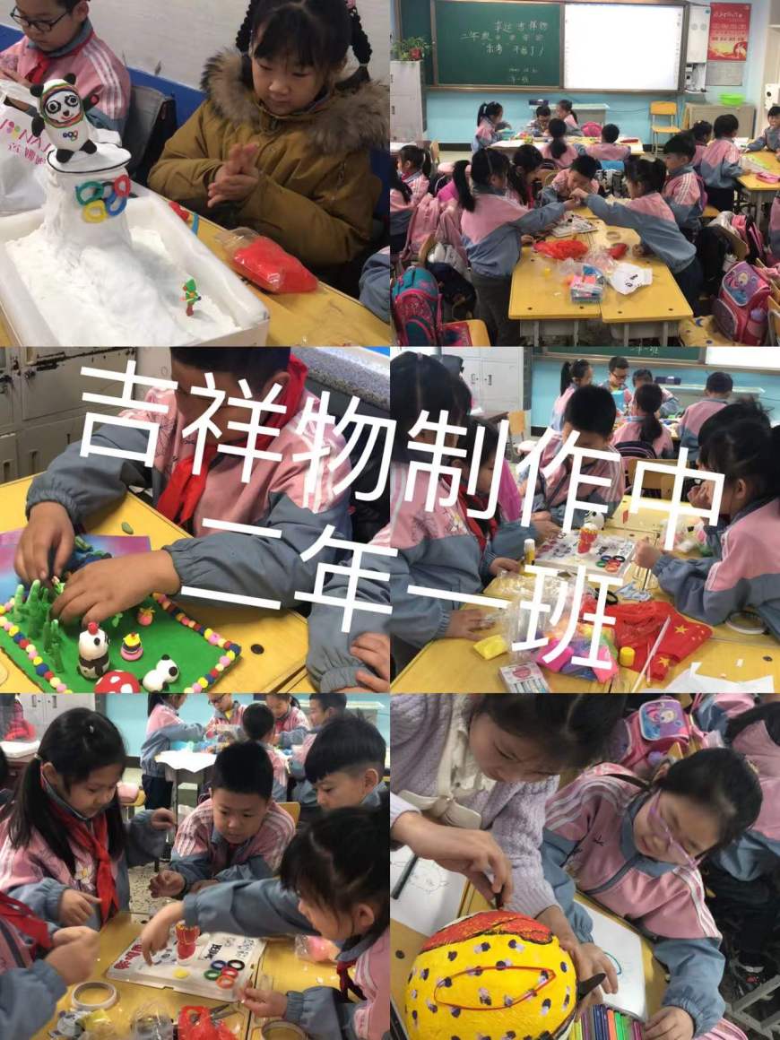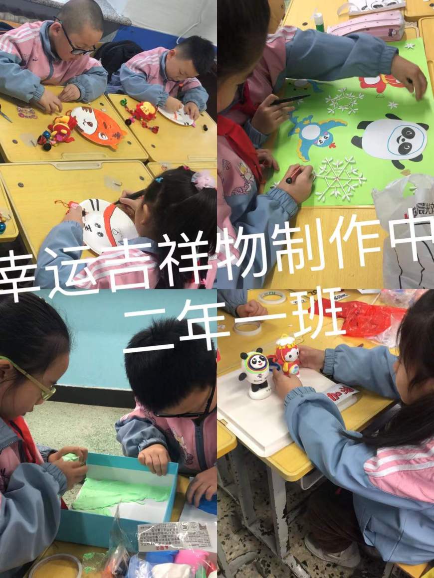 前期准备工作就绪,项目测评于2021年12月30日正式进行,孩子围坐在课桌旁,早已跃跃欲试。开始制作了,小组成员按照分工开始忙碌起来,画的画,剪的剪,粘的粘,捏的捏,缝的缝……大家分工合作,有序进行,各种材料在孩子们的手中灵动起来,一件件吉祥物在孩子们灵巧的手中诞生。