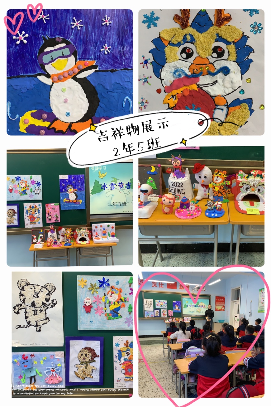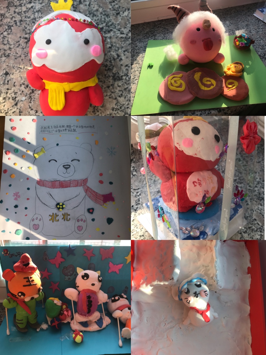 根据双减政策的指导方针,在学校的组织安排下,新疆二校二年五班开展了以“冰、雪”资源为载体的丰富多彩的“我为冰雪节设计吉祥物”项目测评活动。本次活动孩子们在吕老师的精心布置和组织下,认真收集资料,大胆构思。学生们都能积极参与,有很多奇思妙想的创意,材料丰富,形式新颖,制作出形状各异,颜色鲜艳的冰雪节吉祥物,装点了美丽的校园。