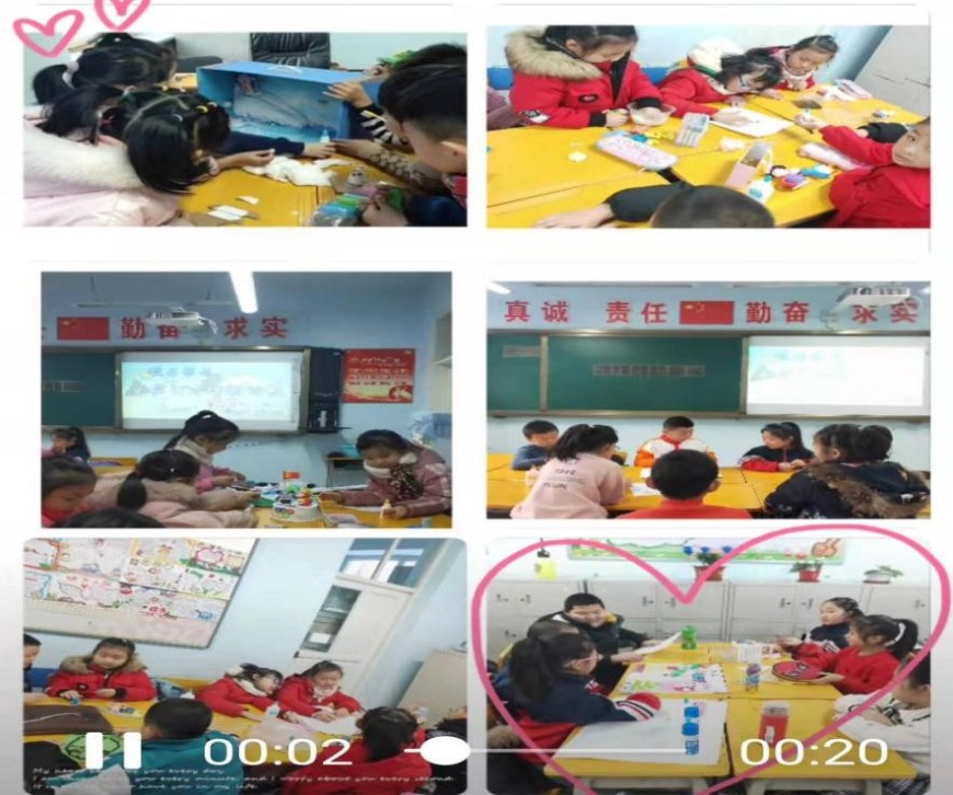 在展示汇报环节,孩子们拿出自己的作品进行展示,主题情境下,有小组合作作品,也有个人设计的作品。每一件作品都有自己的特色,精彩无限,展现了孩子们的童年美好。另外,孩子们在汇报时,按照分工大胆表达自己的想法,介绍设计来源、设计意图等等。高度考察小组成员的默契配合度,也考察了个人的语言表达能力。培养了学生爱学校、爱家乡、爱祖国的精神。