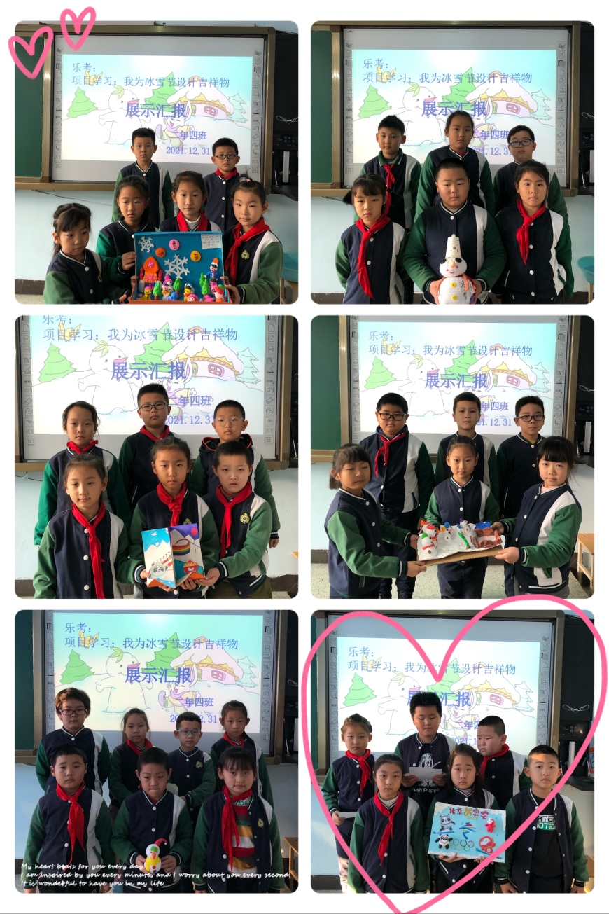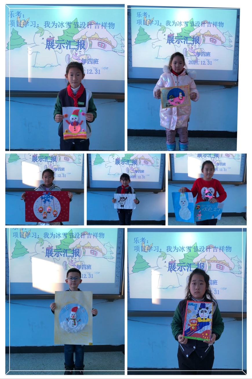 “乐考”——一个新颖的考试名词,却从多方面展示了孩子的成长。孩子们以“幸运吉祥物”为主题展现了我们东北这个季节的特点与魅力,展示了孩子们对2022年冰雪节的期盼与祝福。“冰墩墩、雪蓉蓉,滑雪场上的奥运健儿以及美丽的圣诞树,福牌虎王的设计等等”,他们将自己对生活的热爱,自己对奥运的祝福通通融入到了作品中,体现了艺术与人文的和谐统一。孩子们积极踊跃地参与到作品制作中,各个眉开眼笑,那兴奋劲就甭提了,此时让我们真正体会到了团结与友爱。而后每个小组又能滔滔不绝地介绍自己小组的创意与构思,又让我们看到了孩子们的良苦用心!