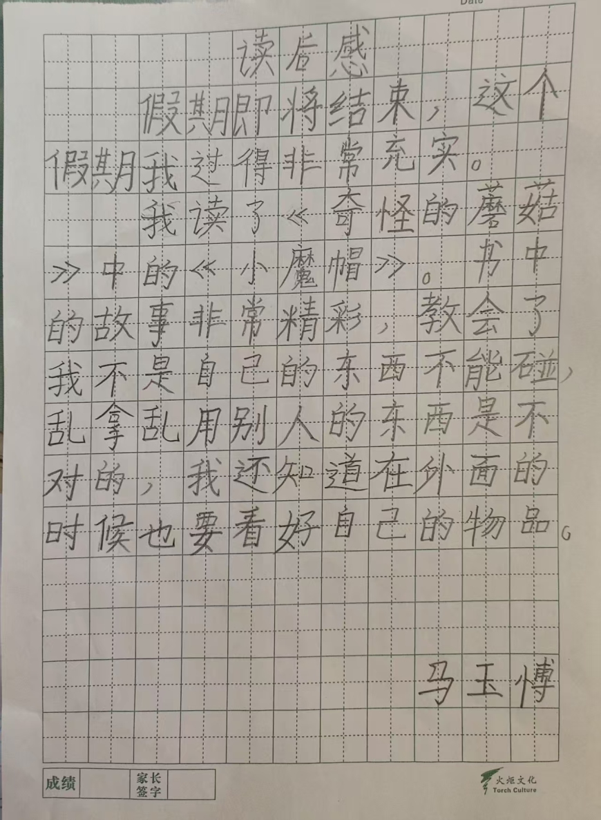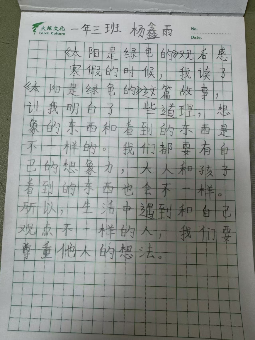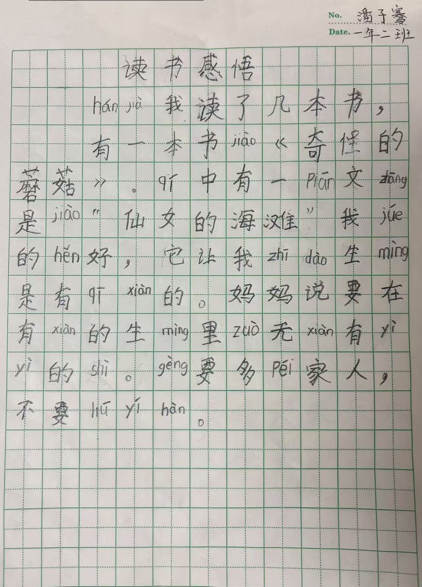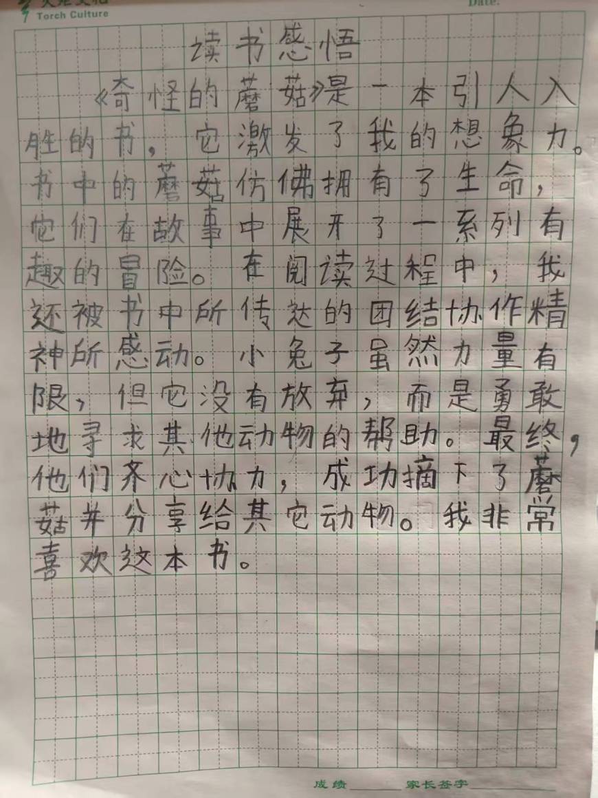 阅读后,孩子们纷纷拿起笔,将自己在书中的收获与感悟记录下来。有的分享了从故事中明白的道理,有的表达了对书中人物的敬佩之情,还有的联系自己的生活实际,畅谈读书带来的启发。