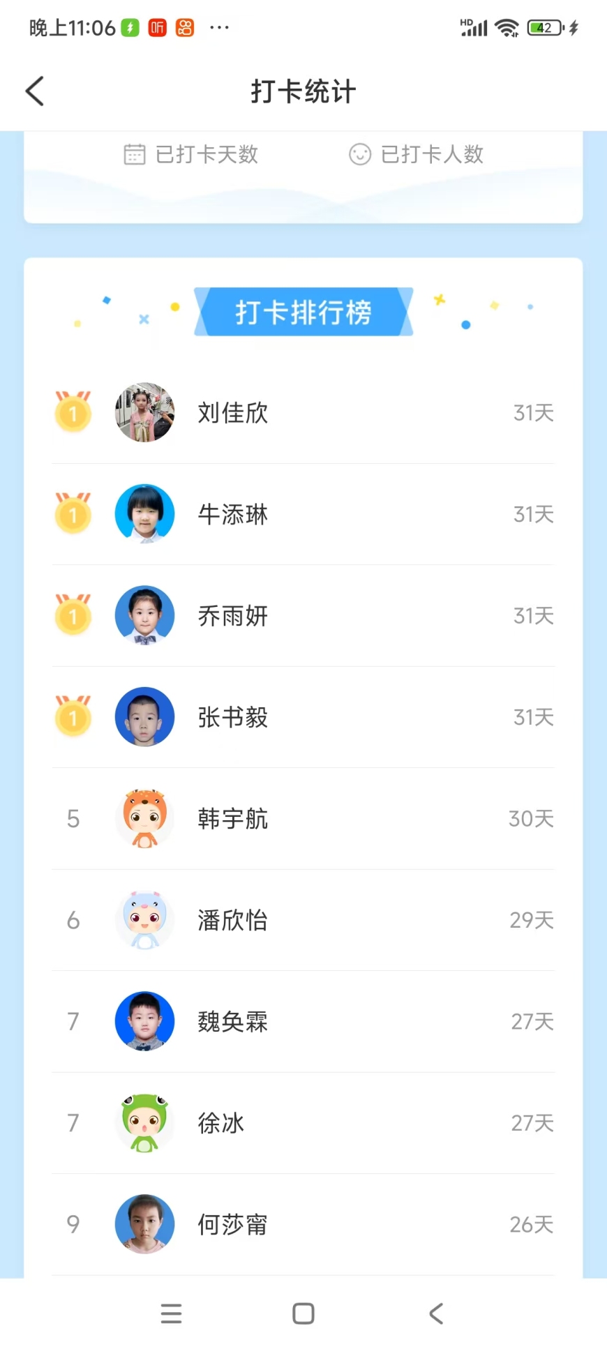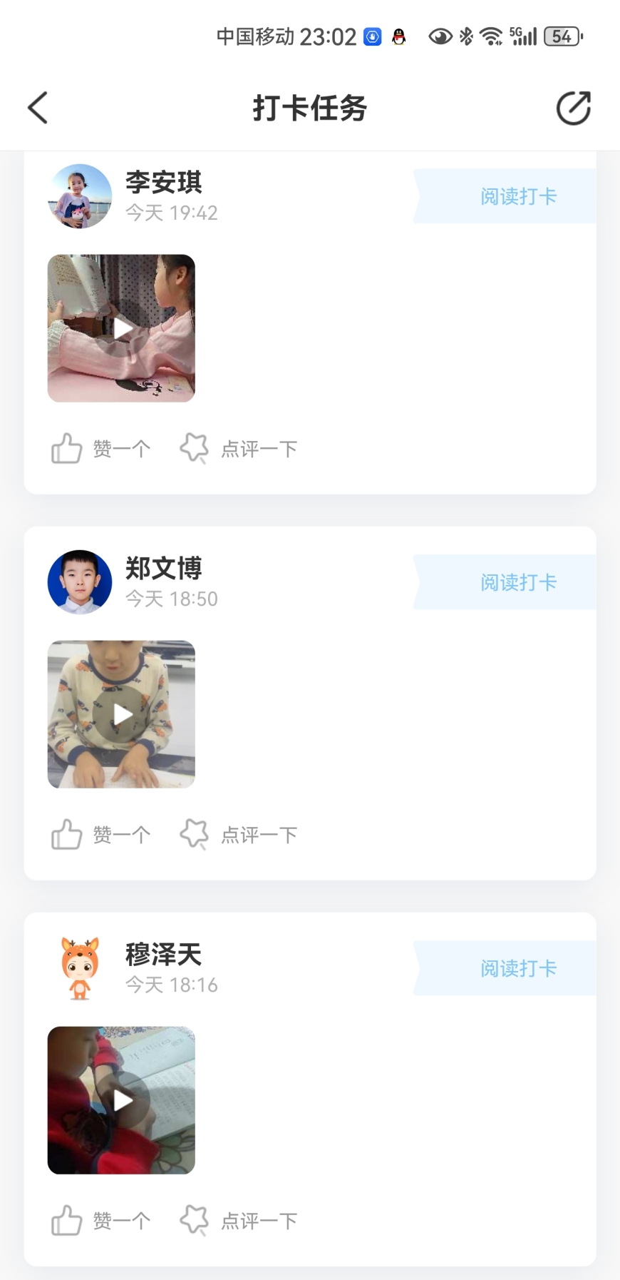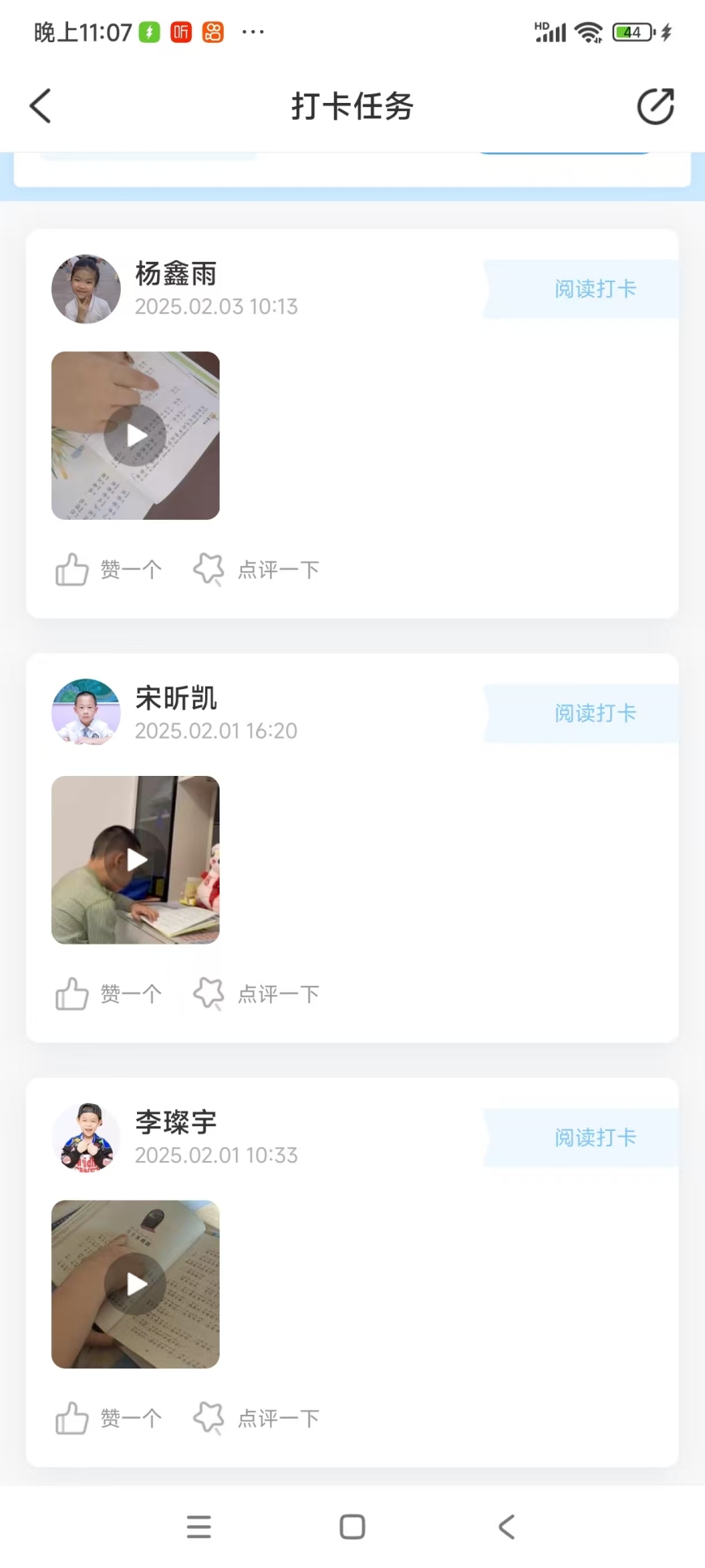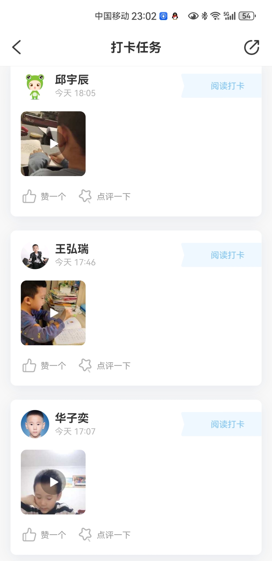 为鼓励持续阅读,学校设置每日读书打卡。同学们通过班级优化大师的阅读打卡,分享阅读照片、视频或简短心得。