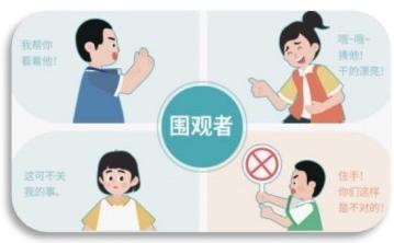 围观者:是观看欺凌过程的学生,包括协助者、附和者、旁观者、阻止者四类。围观者的不同角色常伴随着环境氛