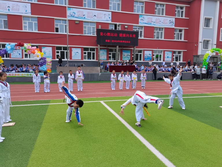 在比赛正式开始前,学校篮球社团与跆拳道社团的同学们带来了精彩绝伦的表演,为运动会注入更多活力。