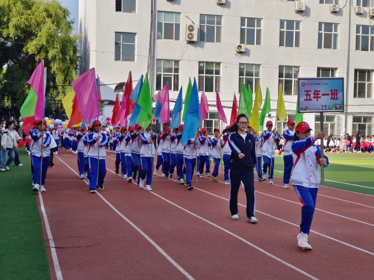 伴随着欢快的运动员进行曲,运动会入场仪式拉开帷幕。各班学子身着统一服装,有的手持彩色花环,有的举着特色班牌,迈着整齐有力的步伐走过主席台,嘹亮的“青春无畏,逐梦扬威”“团结拼搏,争创佳绩”等口号响彻校园,尽显少年朝气。与此同时,前导词小主持人精神抖擞地站在台侧,用富有激情的声音宣读各班特色前导词,从班级文化到运动目标,一字一句将班级精神与运动热情传递到校园的每一个角落。