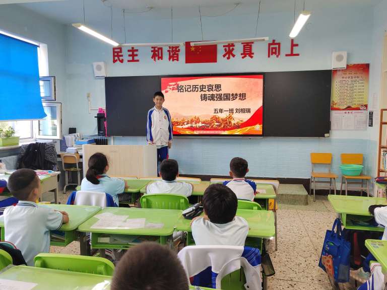 各班级以“红色九月”为契机,开展形式多样的红色主题班会。班主任们结合年级特点,通过播放红色动画短片、分享“小英雄雨来”“小兵张嘎”等适合儿童的革命故事、组织“红色知识小问答”等环节,让同学们在轻松互动中了解党史、铭记英烈。课堂上,孩子们积极举手分享自己知道的红色故事,稚嫩的话语中满是对英雄的敬仰,红色基因在潜移默化中浸润成长之路。
