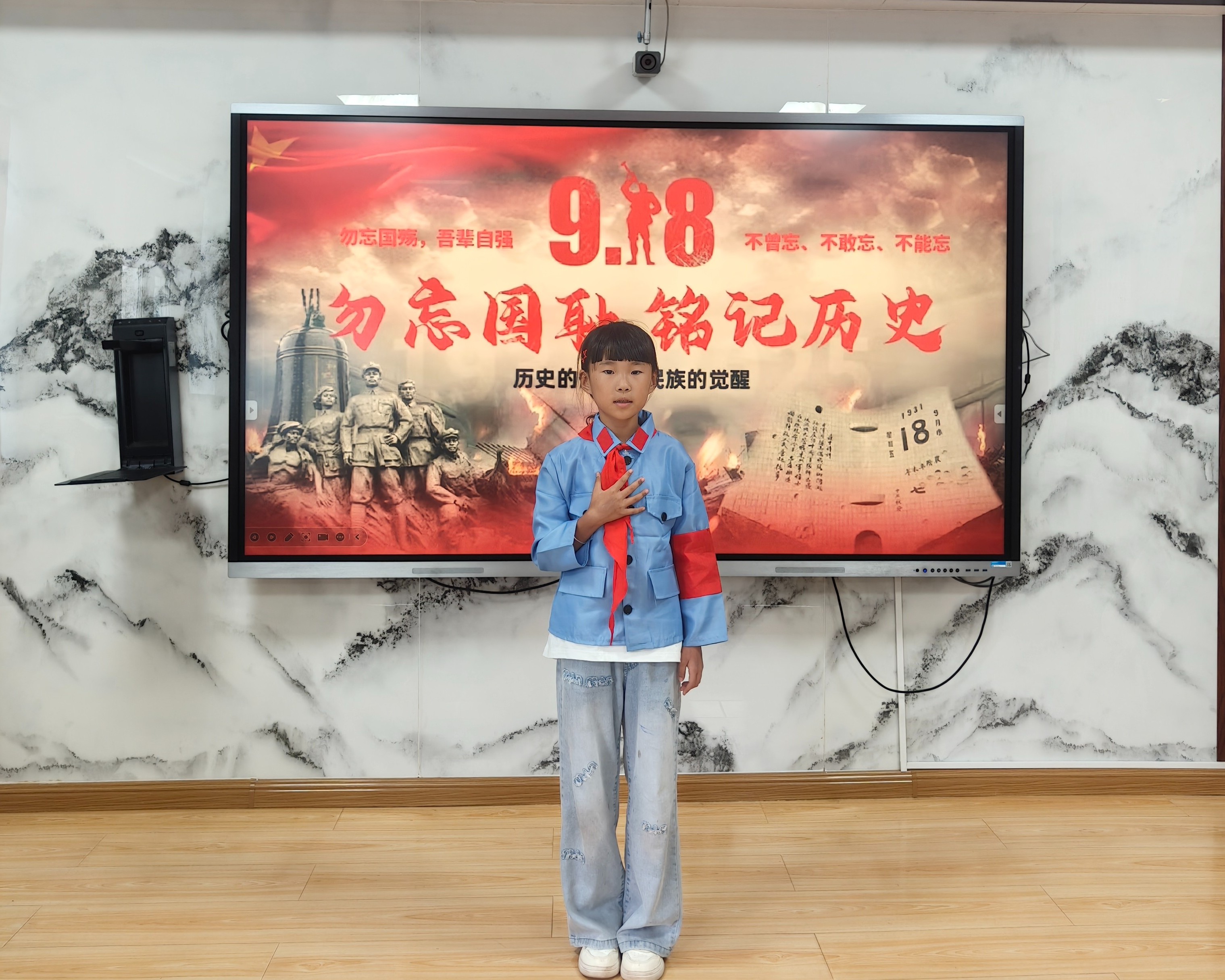 9月18日,学校组织全体师生举行默哀仪式。伴随着低沉的音乐,师生们垂首肃立,以一分钟的静默,缅怀为国家和人民牺牲的革命先烈与奉献者。校园内鸦雀无声,孩子们眼中的庄重与肃穆,展现出对英烈的深切敬意,也让“铭记历史、珍爱和平”的信念在心中更加坚定。
