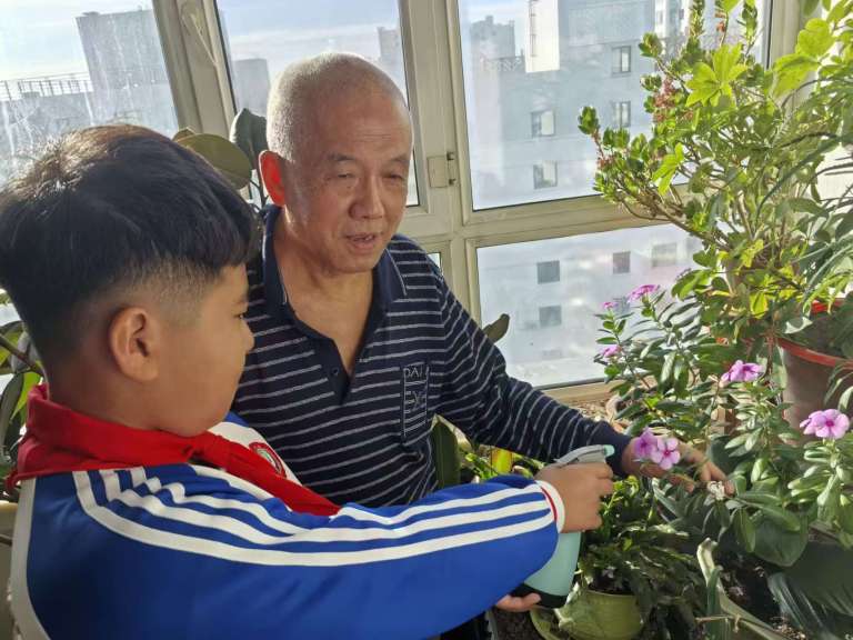“老吾老以及人之老”,孝道是中华文明的璀璨明珠。作为学校的哥哥姐姐,五年级的同学们用实际行动诠释“敬老爱老”的深刻内涵。他们走进社区,为爷爷奶奶们表演节目、捶背揉肩、打扫卫生;他们在家中,为长辈泡一杯热茶,洗一次脚,讲一个笑话。听老一辈讲那过去的故事,懂得了今天的幸福来之不易。一声问候,一次陪伴,一份体贴,孝道的暖流在代际间静静流淌,这枚“尊老章”,是他们送给祖国最好的“成人礼”。