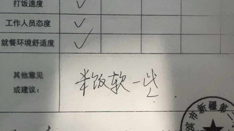 (二)关于教师提出“米饭再软一些”的建议。此建议符合营养健康要求,更易于消化吸收,予以采纳,蒸米饭时逐步进行加水调整,每日关注。