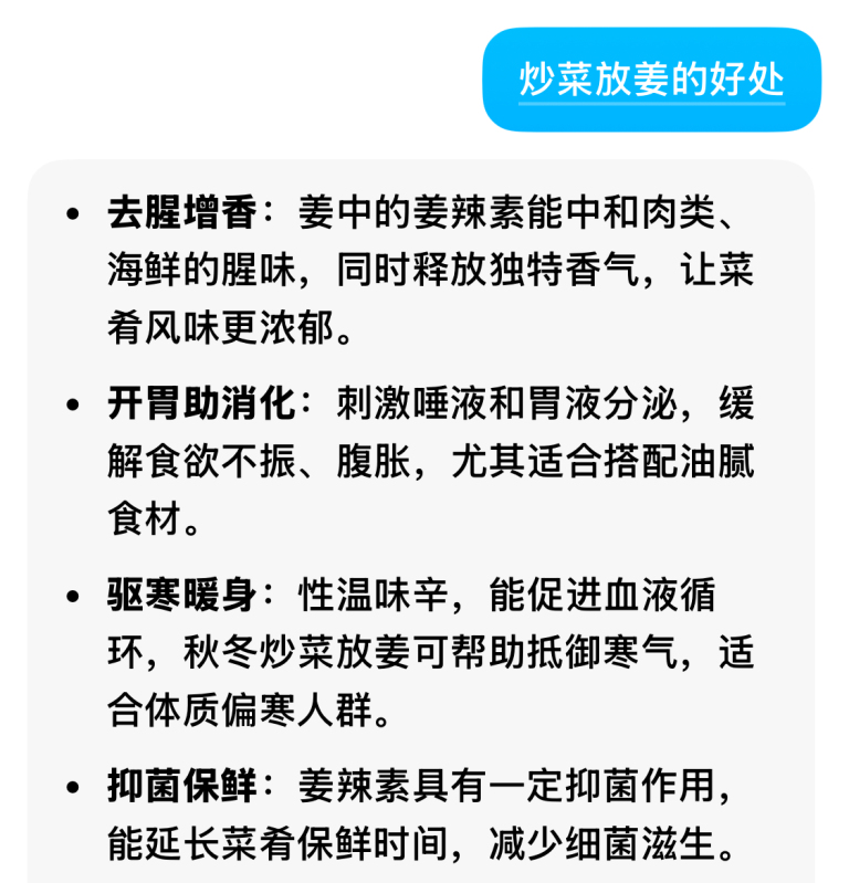 (三)关于教师提出“菜花土豆丝不放姜”的建议。 对于此建议,进行了多方查证,炒菜放姜符合营养健康标准。食堂服务需兼顾多数师生的饮食需求,个人口味偏好属于个性化诉求,未反映群体共同需求,因此不具备广泛适用的决策参考价值,不具有普遍性与代表性,不予采纳。