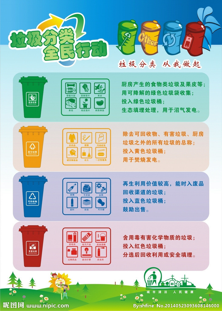 随着人们生活水平的提高,经济快速发展,资源消耗和环境污染也付出了相应的代价。希望您立即行动起来,从自身做起,从每个家庭做起,把垃圾分类处理,爱护我们的家园,保护我们的生存环境。