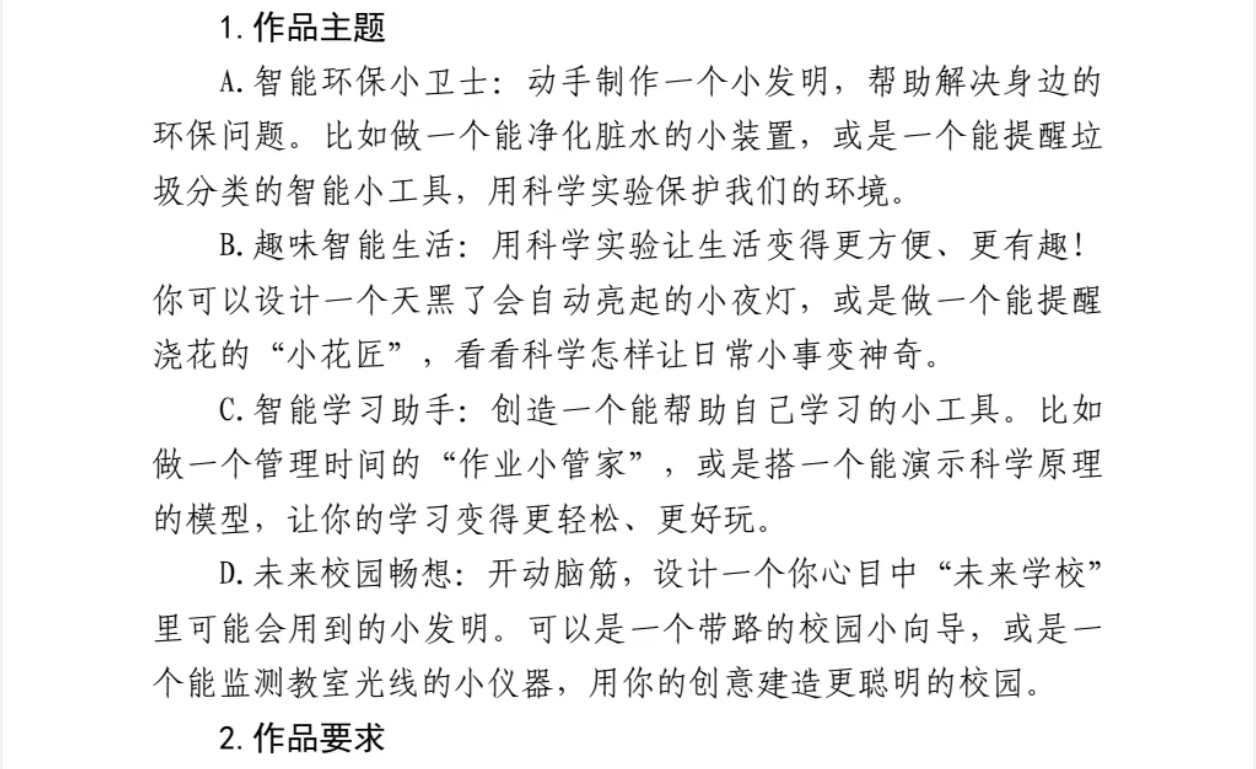 以科创为翼,以实践为基,请同学们充分发挥想象力与创造力,主动参与科创作品创作,在动手实践中探索科学奥秘,展现智慧风采。