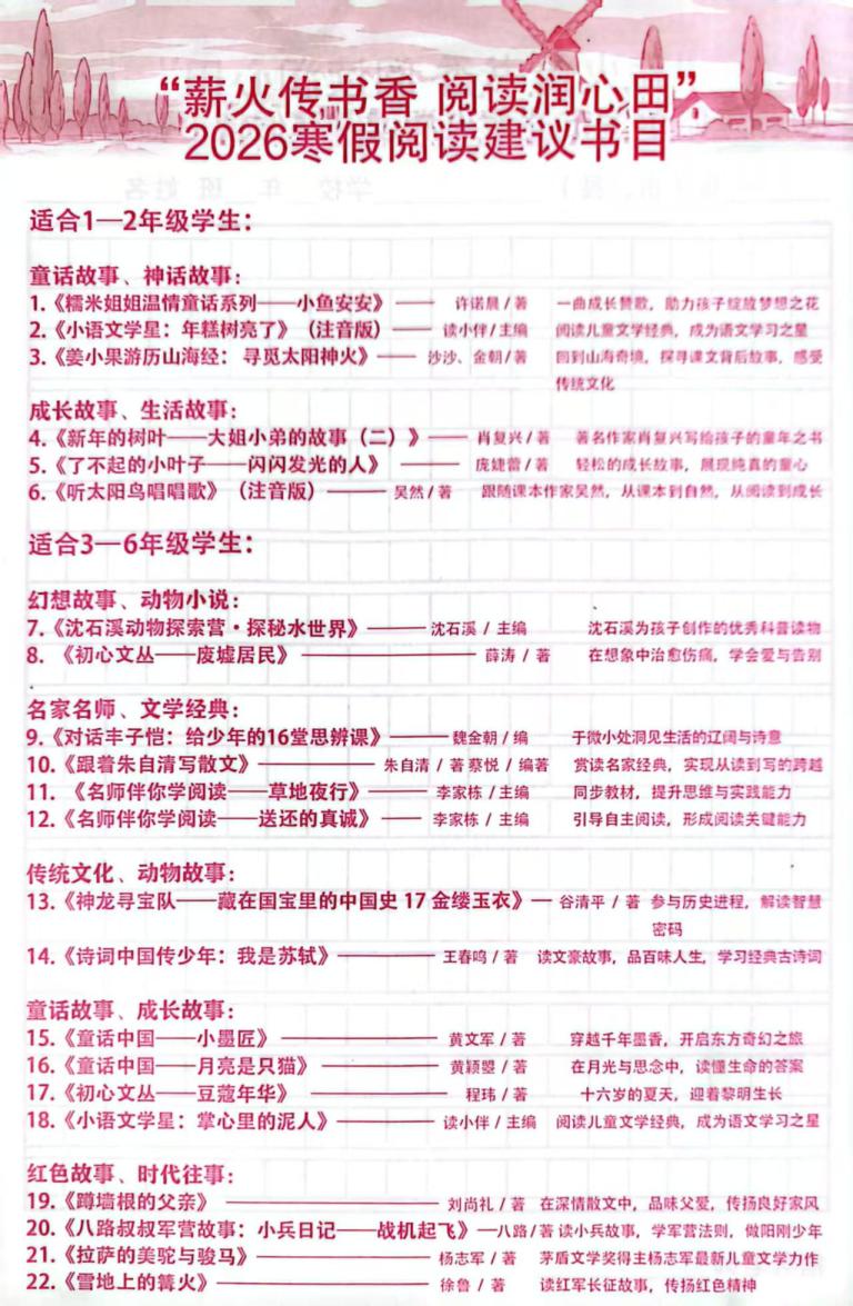 希望每一位同学都能在这段假期中,用心阅读、参与劳动、传承文化、坚持锻炼、动手实践,用行动点亮属于自己的“五福”之光,让这个寒假不仅充满年味的喜悦,更满载成长的印记。