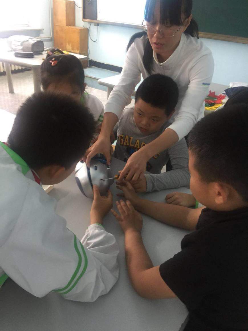 我们原创的拆解课程,可以说是专为淘小子设计的,也有未来的女工程师。开课近一个月了,果然孩子们收获极大,兴趣特浓。今天是五年级的课程,课程我们永远在探索中!特别感谢谷春蕾老师!她细致研究课程内容,设计课堂,即时点拨。有知识传递有方法指导,有思维引领,有操作示范……每一个环节都传递着严谨的实事求是的科学态度,系统思考的引导,类比机器按钮功能的引导…真令人佩服,一定要为她点赞!。还要值得赞叹的是我们的孩子,看看他们的认真专注的人样子,相互合作的状态,一丝不苟的操作!未来的创造者!